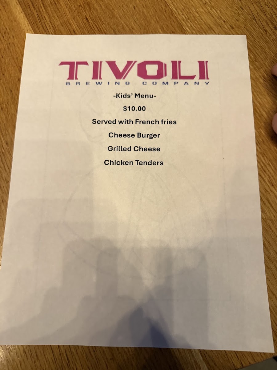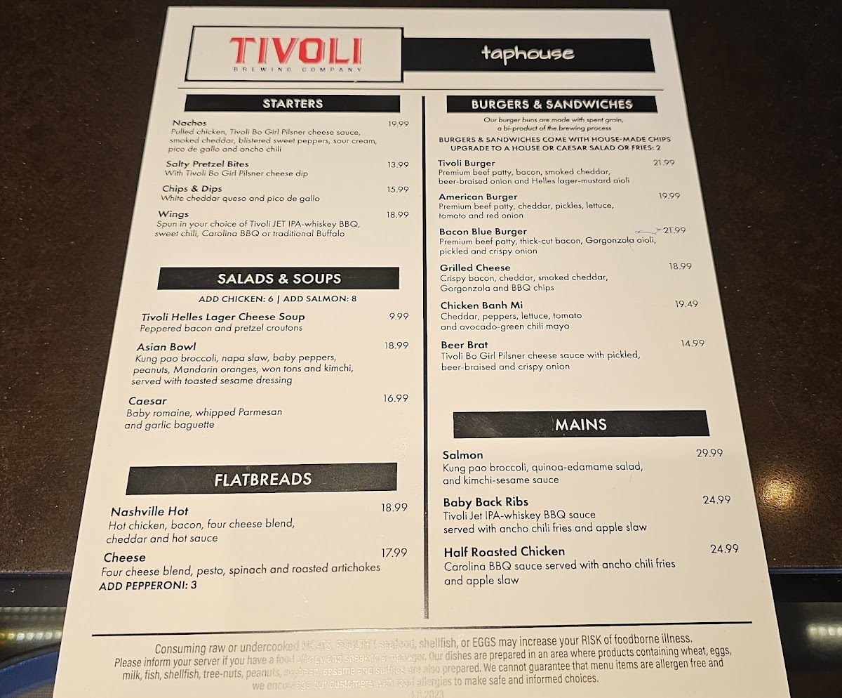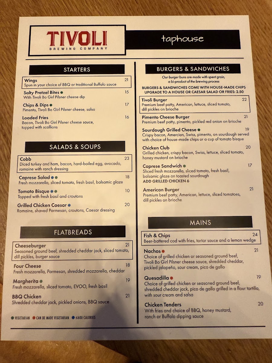 Tivoli Tap House Menu