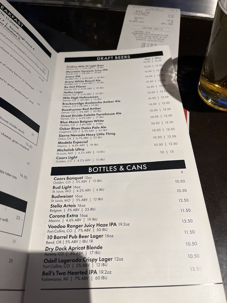 Beyond the savory dishes, the menu includes carefully chosen draft beers, featuring local favorites like Avery IPA and Breckenridge Avalanche Amber Ale. These refreshingly cold options add to the easygoing vibe, whether you’re settling in for a quieter moment or catching up over shared small plates like chicken nachos. A few lighter options, like side salads and flatbreads, help round out the menu for those looking for something less heavy.